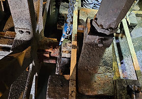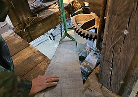 Week Three-Wheel turned by hand to check balance and meshing. Some repointing completed in under croft